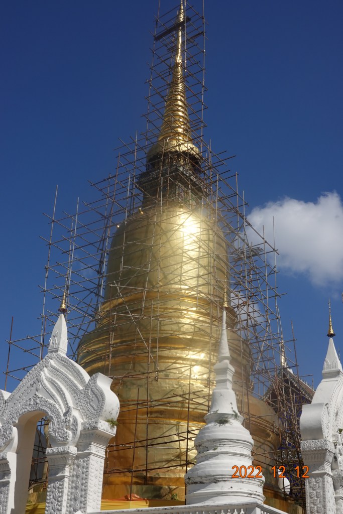 I went outside to see the large gold chedi with scaffolding (the Thais use bamboo for scaffolding) for cleaning or maybe some restoration work: