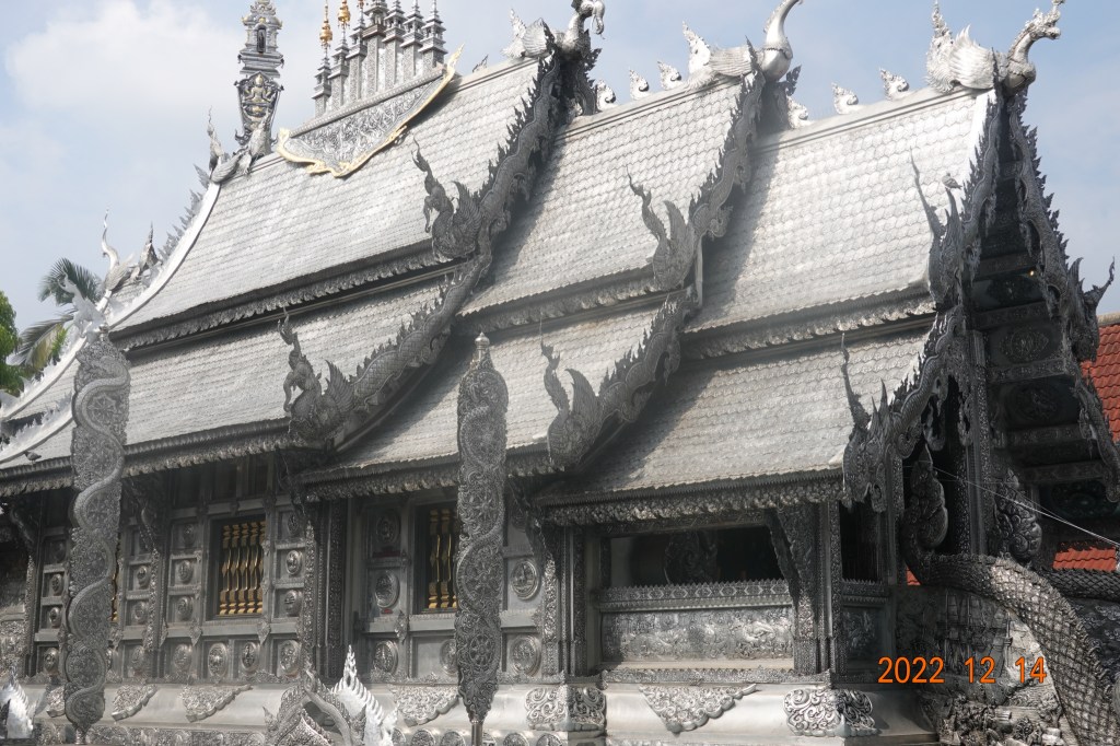 The east side of the Silver Ubosot, showing that even the roof has the “silver” treatment and finishing: