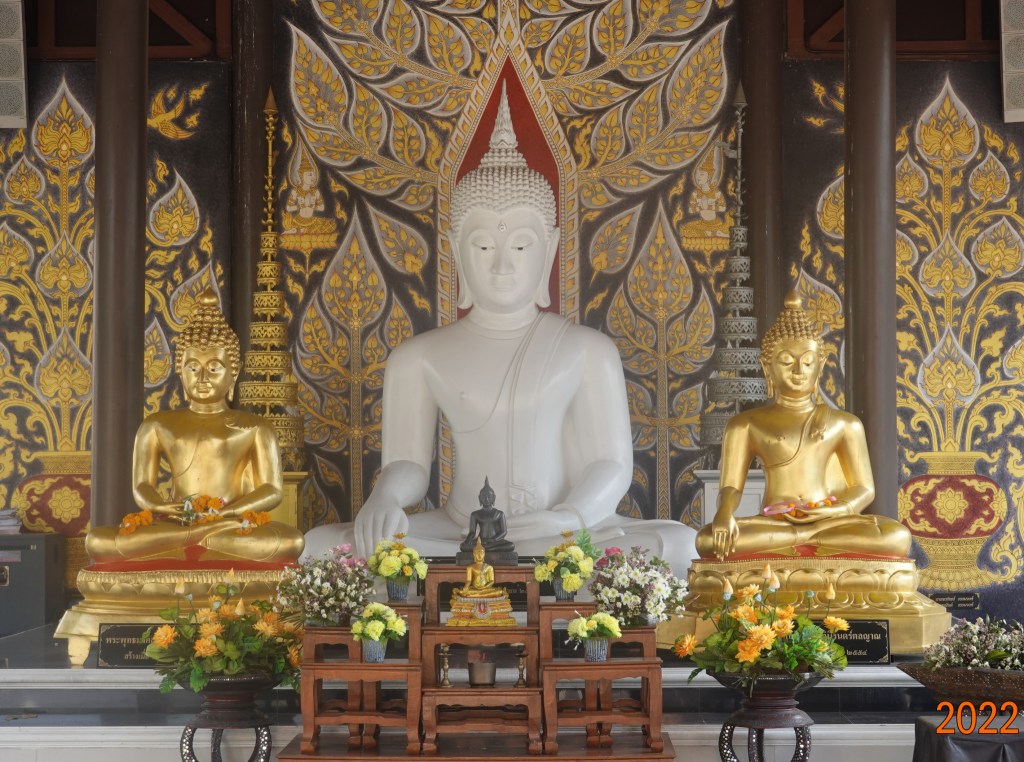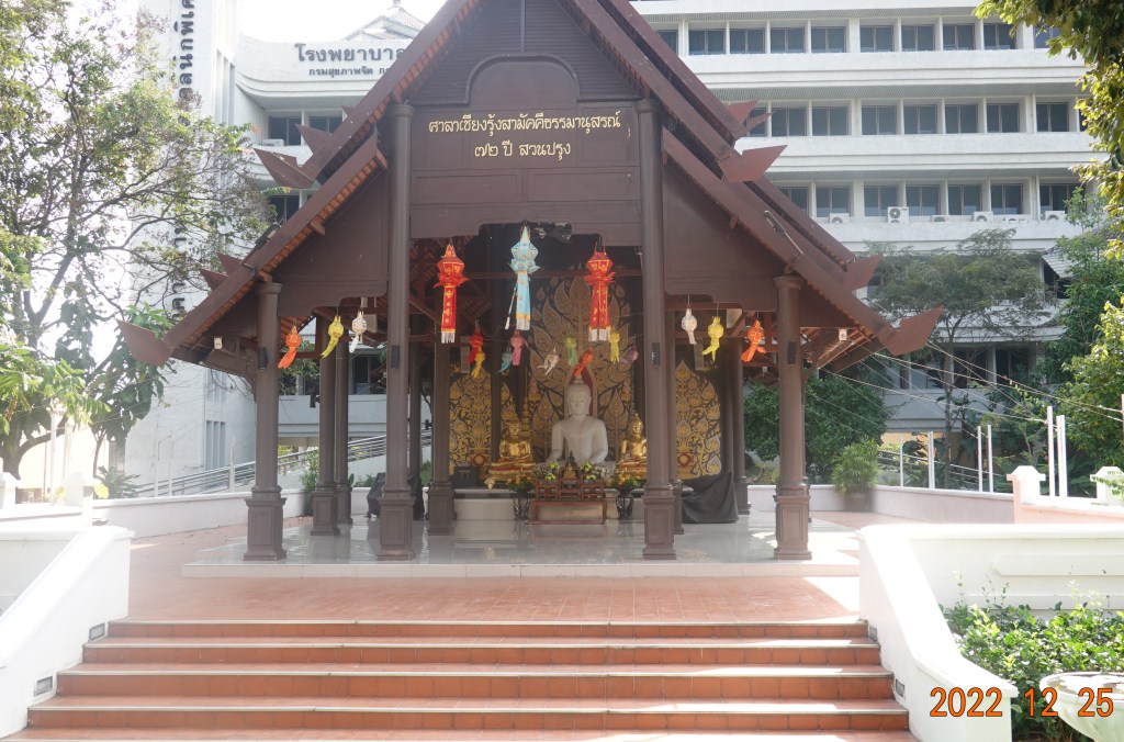 While walking westward along the outer-moat road, I passed a psychiatric hospital and noticed in front an open-air pavilion, sometimes called a “sala,” in which a Buddha statue was placed. Perhaps a peaceful place for the staff to escape on their breaks.