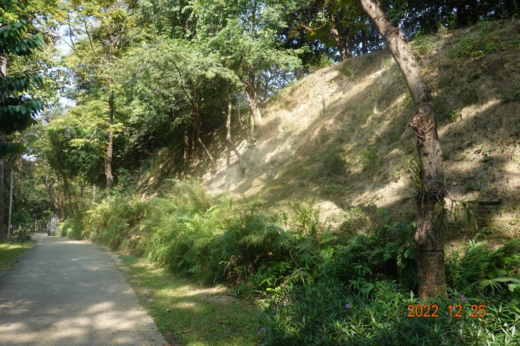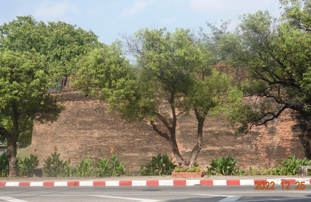 Walked to Chiang Mai Gate, the main south gate of the old city. From there I headed west, feeling the need to explore more of the Kamphaengdin. As followers of my blog know, I have a fascination with the Kamphaengdin. It is a little-known but important part of Chiang Mai history, and not well-known by many Thais living here. The Kamphaengdin was an earth/clay wall, the second wall encircling the east and south of the rectangular city wall and moat. I posted a map from 1904 in a previous post clearly showing the Kamphaeng Din, or Kamphaengdin. Just south of Ku Huang Corner, the southwest corner of the old city wall, the Kamphaengdin came very close to connecting to the main brick wall. There is a park along this section of the wall from which a 200-300 meter section of the Kamphaengdin still exists.