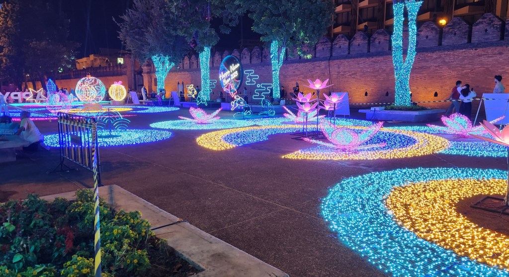 Today is the last day of 2022, New Year’s Eve. The preparations for a celebration are well underway, centered at the plaza outside Tha Phae Gate. This plaza has been the center of previous New Year celebrations, and is used for many community events, marathons, various concerts, the Loy Krathong celebration, and many more. Thailand has not really had a New Year celebration for 5 years. After the passing on King Bhumibol Adulyadej (King Rama IX) just over 5 years ago, Thailand mourned for two years. Then the pandemic came with lockdowns, border closings, and the significant economic impact. Even though tourism is not back to pre-pandemic numbers, the economy is improving, tourism is dramatically better than a year ago, and the general mood is good.