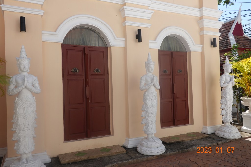 I found no reference to these urns in my searching the internet to learn about this temple. I also found no information about the temple’s age or history. And, I saw no other person while I was there, although at what I think of as the back entrance, I did see a few cars and a couple of motorbikes, so there are people here somewhere. When I walk by the entrance on weekdays on my way to the O2 Gym, I do hear children’s voices, so I do know that the school is busy on weekdays. I was here on a Saturday, it was very, very quiet.