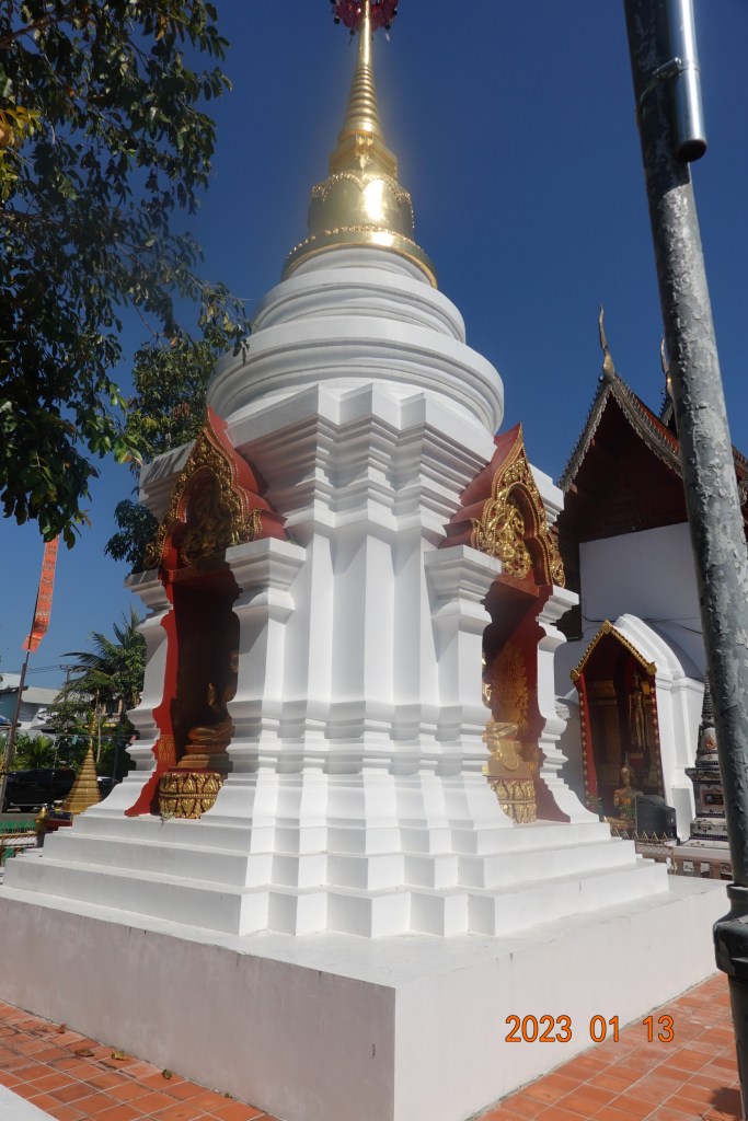 I found almost no indication online about the history of this temple. One of its notable features is the shrine by the entrance dedicated to King Naresuan who is a well-known and loved warrior king, often depicted in films, TV programs, literature etc. King Naresuan lived in the 16th and 17th centuries and fought against the Burmese in the wars to liberate Lanna from Burmese occupation. And this statue does make him appear to be a strong and fierce warrior.