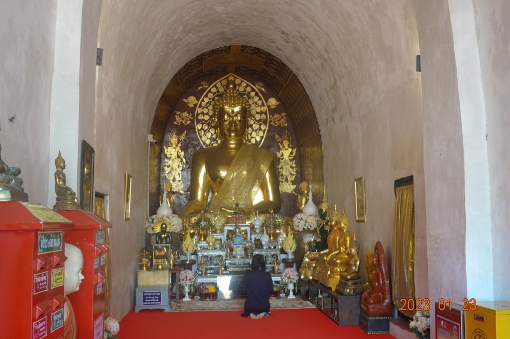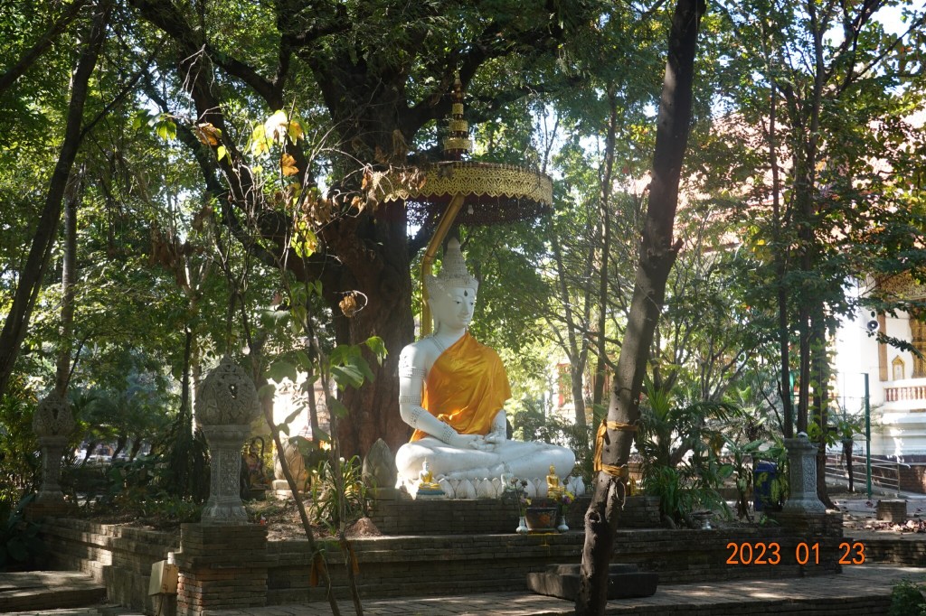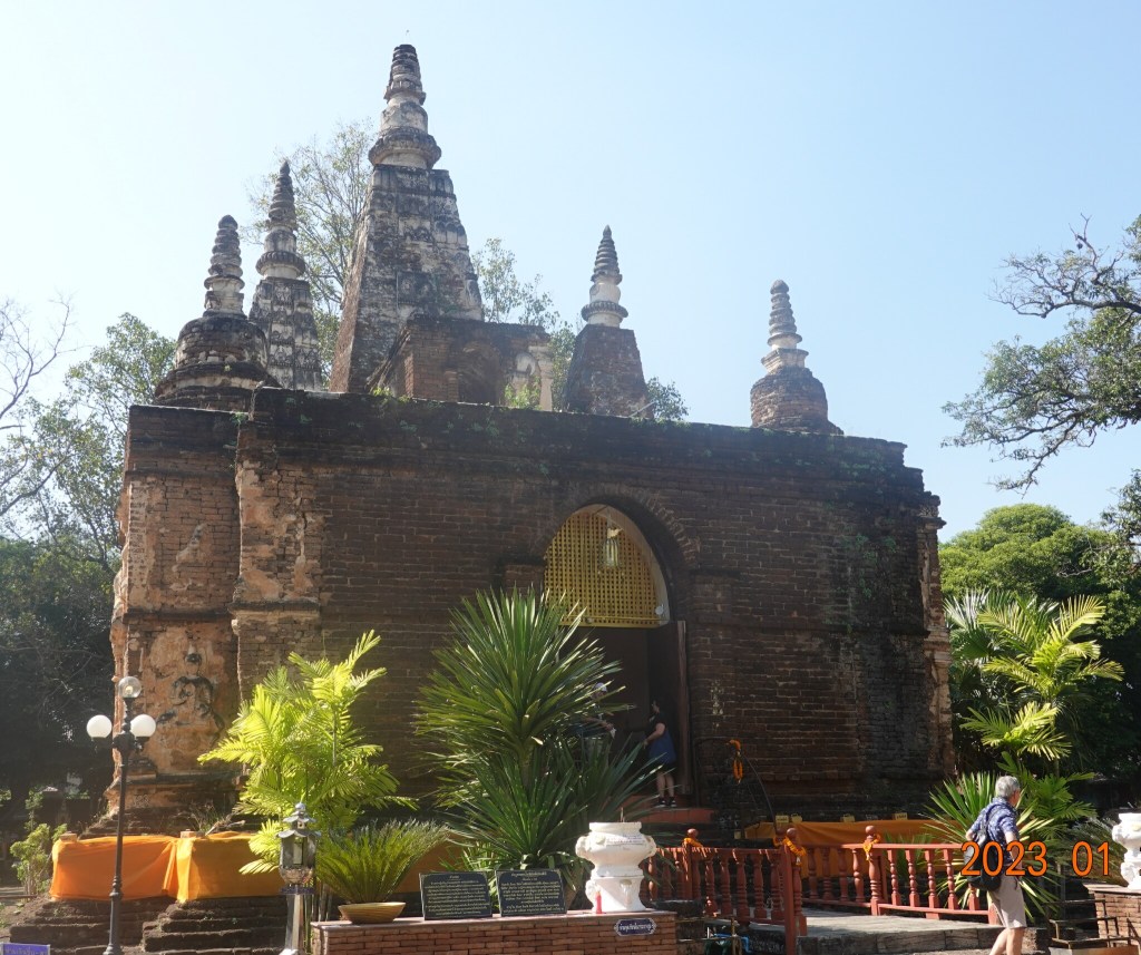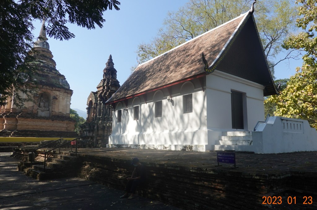 Today started with a workout with Ning at the O2 Gym. After I got back to See You Soon, it occurred to me that I have not visited Wat Jed Yod this year. I was unable to last year because it was closed to the public as some of the monks there had Covid. Wat Jed Yod is about 5 kilometers away, but difficult to get to walking, as it is on the other side of a very busy highway. So I got a Grab ride there.