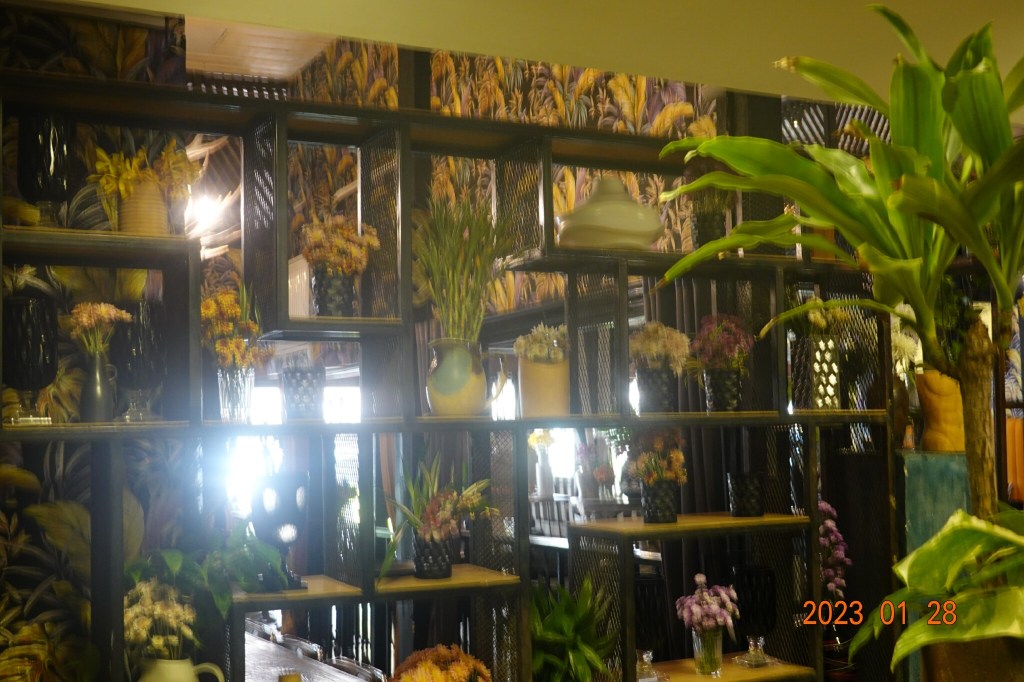 And behind me, the flowers and art gallery feel continued. This is a beautiful restaurant. A little more “hi-so” for my taste, but very nice.