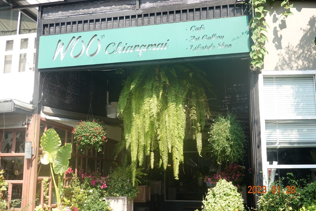 I arrived at about 2 PM, hoping to be after a busy lunch time. Here is the entrance to Woo Cafe, calling itself a Cafe, Art Gallery, and Lifestyle Shop. It does have a garden feel at the entrance and inside.