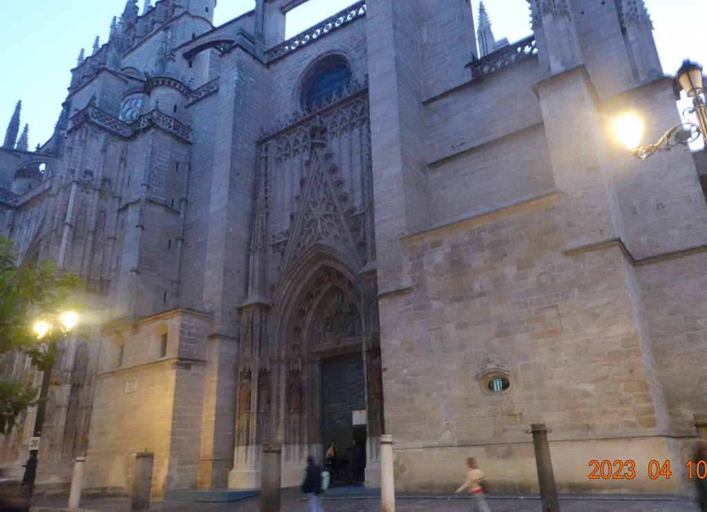 Today is our first day walking the Via de la Plata route of the family of Camino de Santiago pilgrimage routes. Southern Spain is having slightly warmer than normal temperatures, with the high in Seville expected to be 33-34 C or about 90-92 F. We decided to get a fairly early start, and met at the cathedral at about 8:30 AM. Here is my last picture of the Seville cathedral: