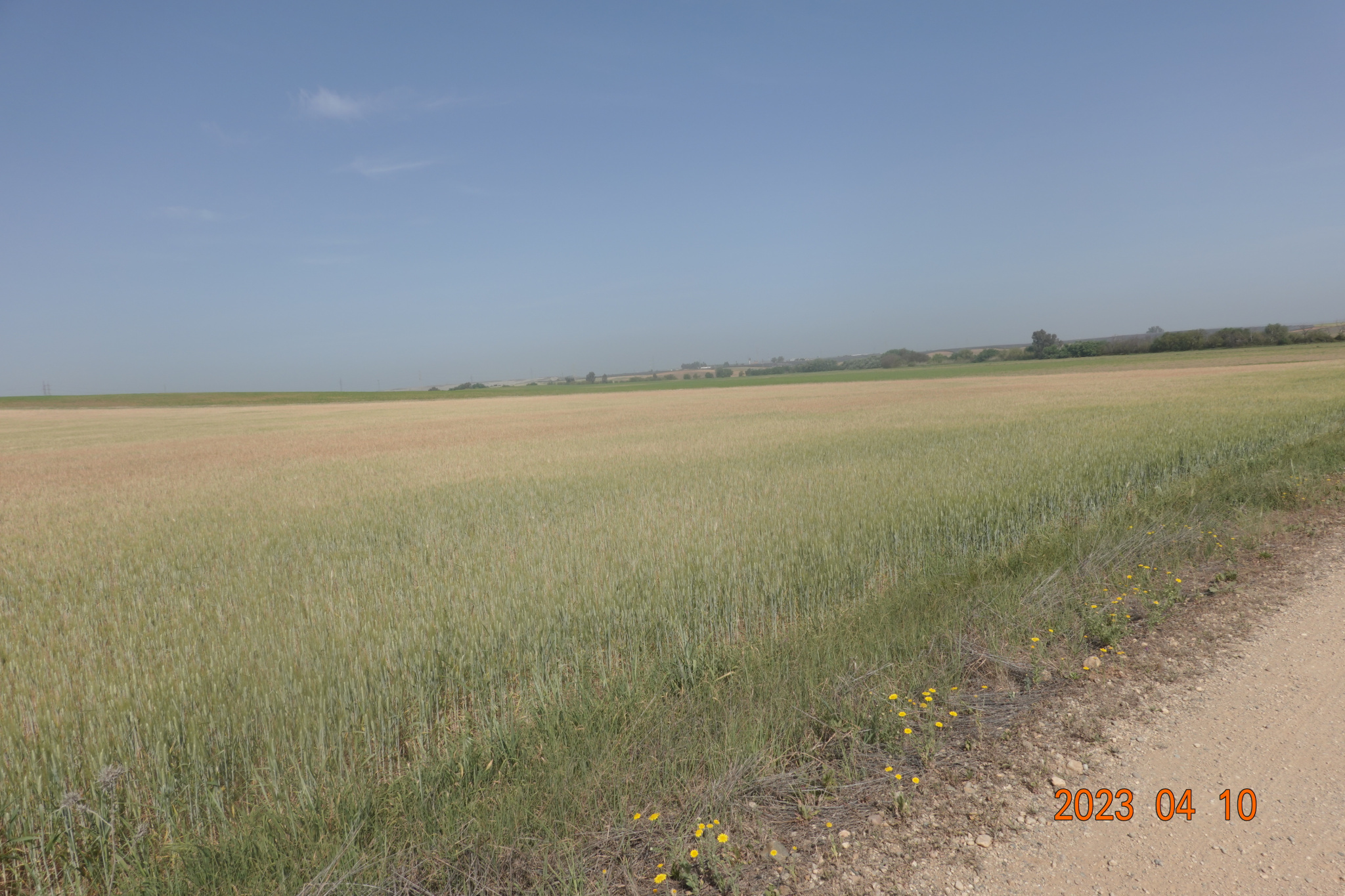 We are in the wheat fields. Long walking and hot, but the wheat makes for a nice view.