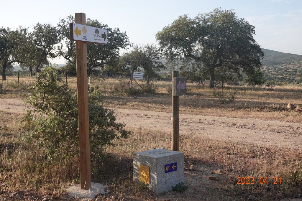 Today we have seen a new smaller Camino Way marker with VP on it. We presume the VP means Via de la Plata.