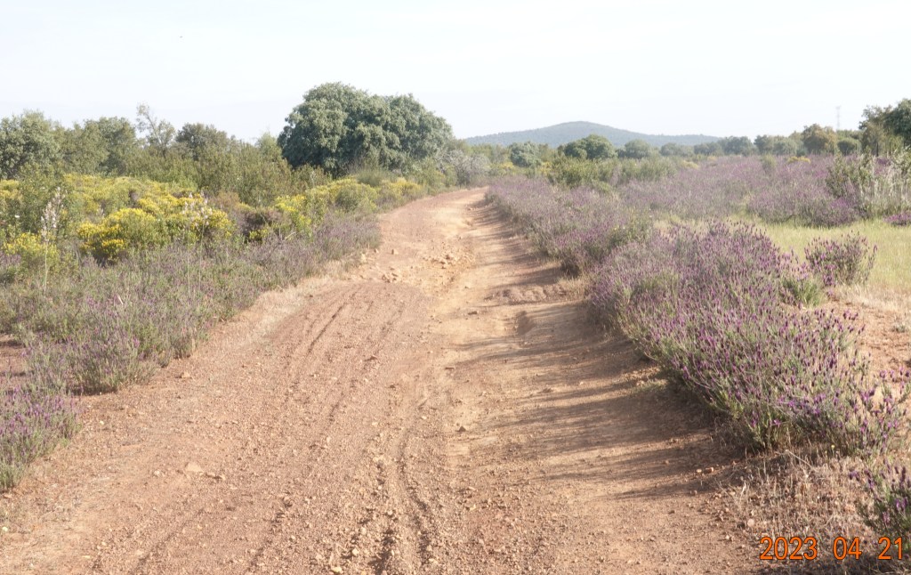 Very quickly we were down in a broad river valley leaving Aljucén. The sign is typical in Spain, a similar sign announces the town and when leaving the town, it is crossed out – as if to say, “no more Aljucén” by a field of bright red poppy-like flowers.
