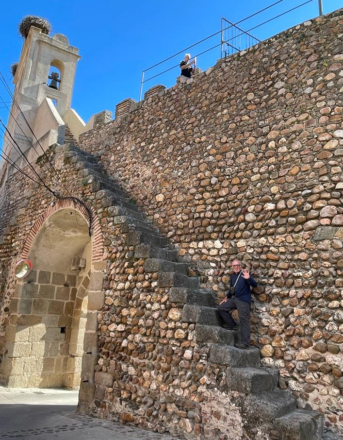 Javier got this photo of me climbing the stairs to the top of the wall. Tom is already at the top taking pictures.
