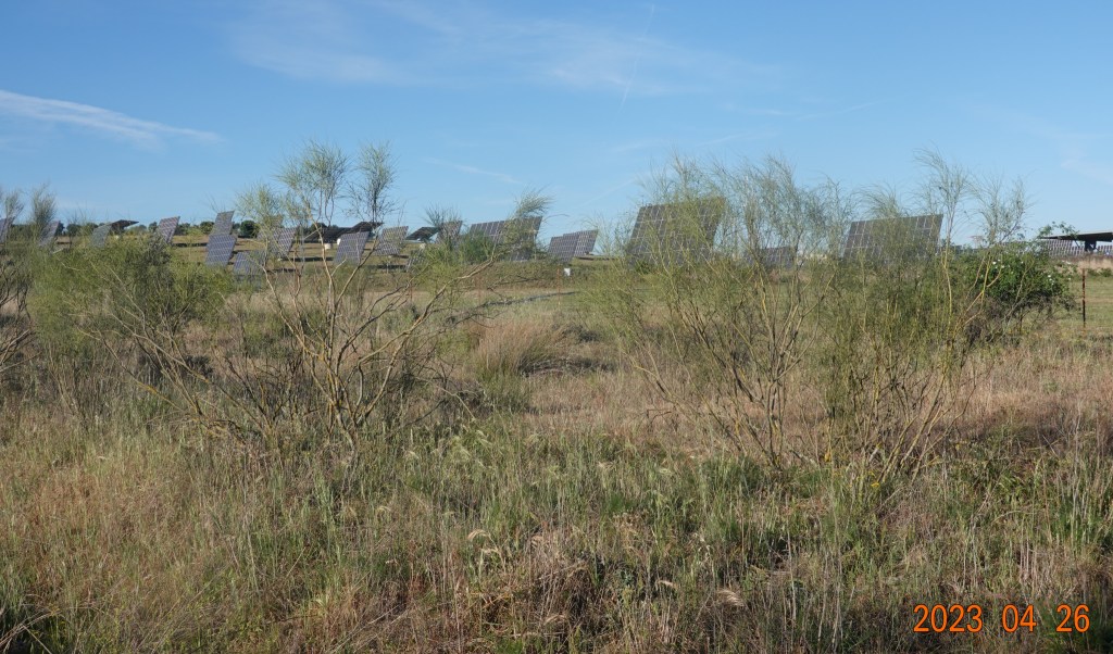 Nearing Galisteo, I got a photo of a fairly large solar farm. Most of the time the view was obliterated by large trees and bushes at the side of the road, so I could not get a good angle to see more of it. We were walking by it for more than 15 minutes.