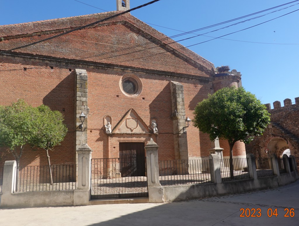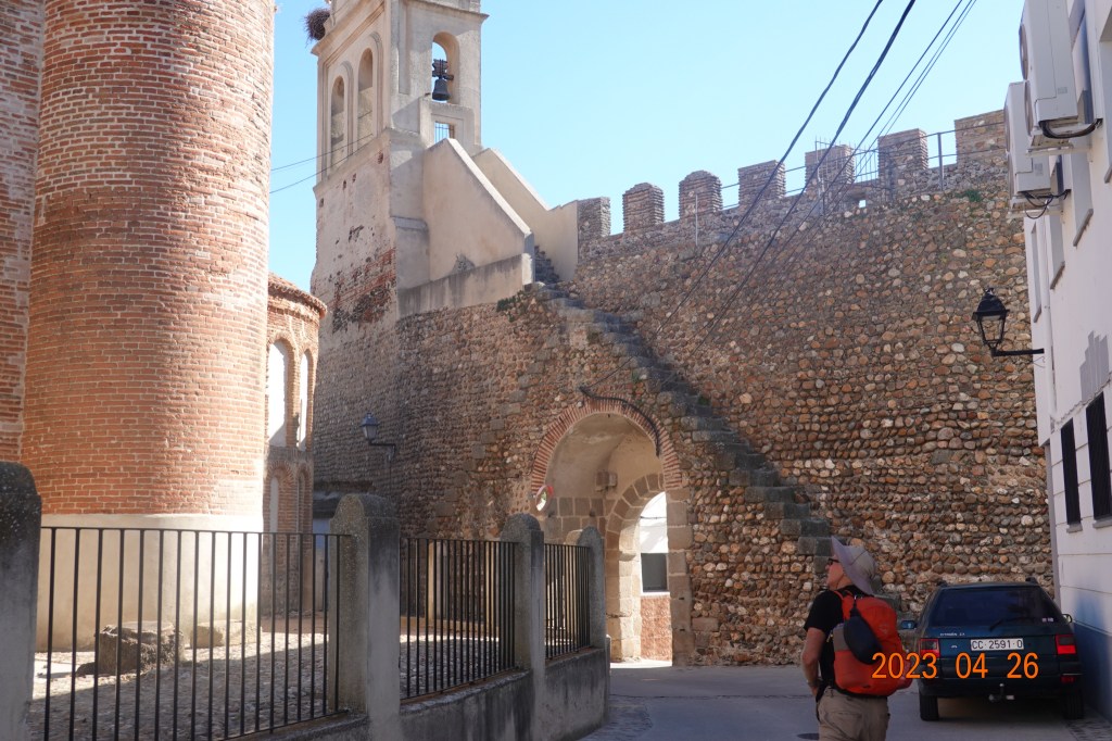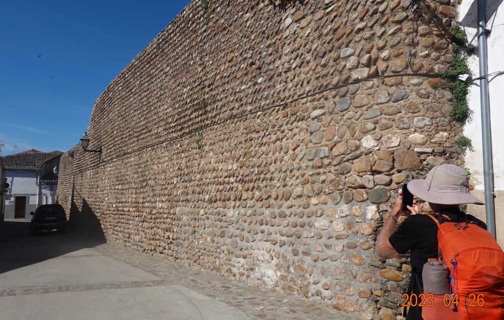 We saw that a Correos (Spanish post office) office was open so I could send some items I’m not using to Santiago de Compostela. Ivar, who runs the Camino Forum on the internet, provides a service whereby for a small fee you can send things to him to keep until you arrive in Santiago de Compostela. The items were not heavy but were taking space in my backpack. The larger item was the bag I use to check my hiking poles to travel to and from Spain, and I do not need that until my return trip home. When the shipping all got sorted out and the items were on their way, we sat down for a cafe con leche, then walked around exploring the old city of Galisteo. Here is what I think was an old monastery in the old city of Galisteo