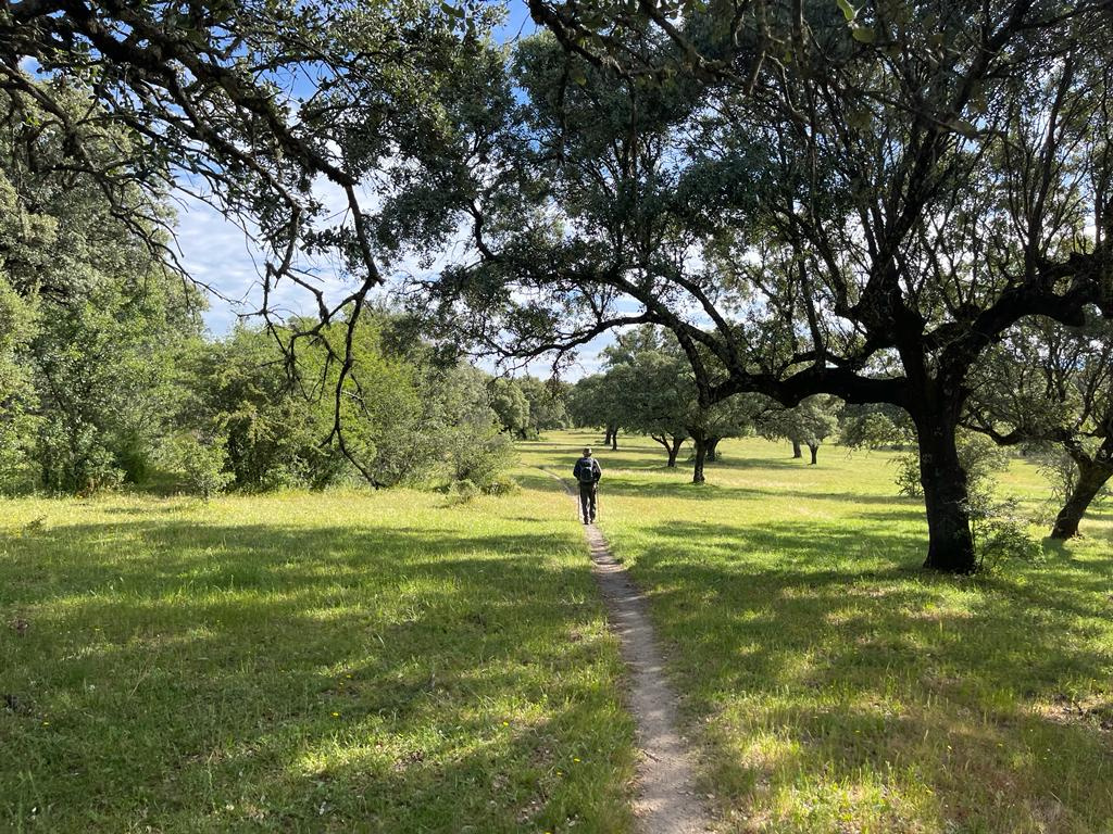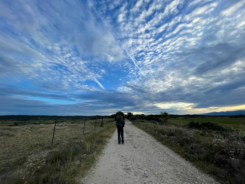 We left Carcaboso and were immediately on natural secondary, dirt roads, away from the highway walking we have had so much of recently. Javier got a photo of me ahead in the early morning.