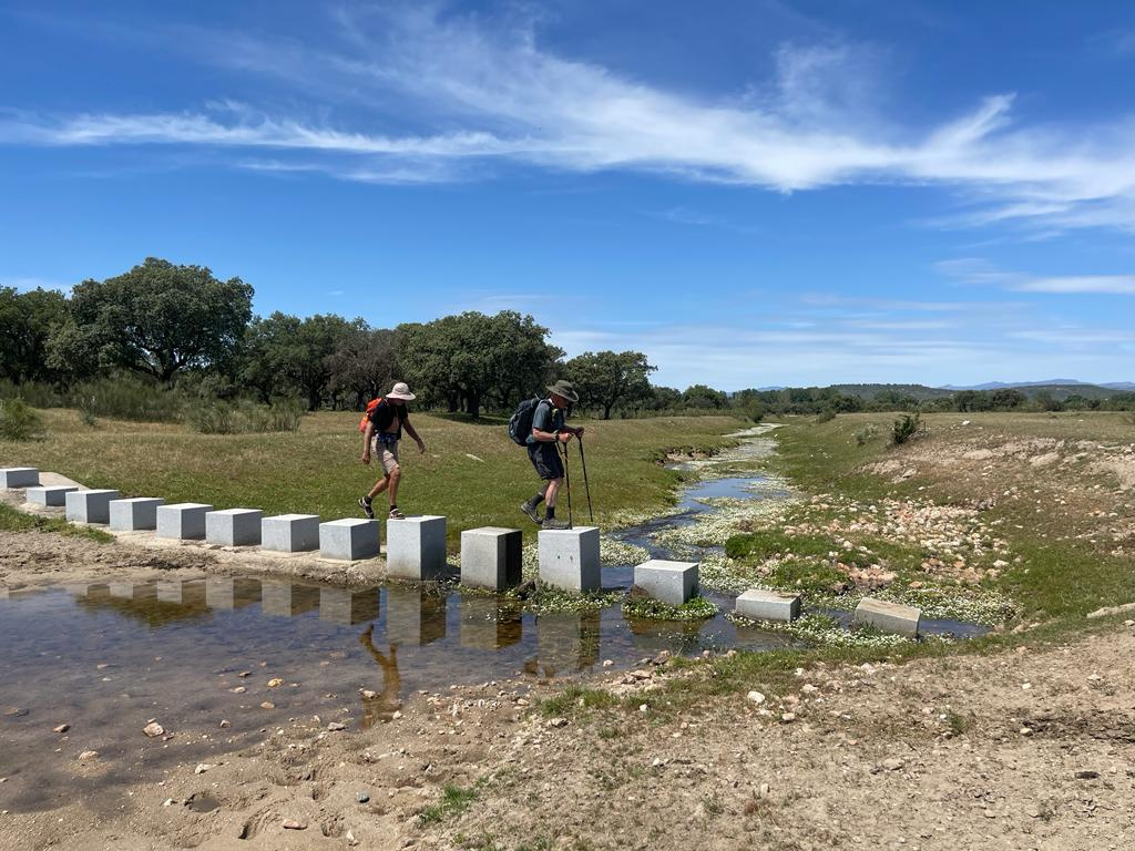Today was the second longest day to date on the Via de la Plata route of the Camino de Santiago pilgrimage routes. And today was definitely the hottest. It was a long day walking almost the whole way on beautiful (there’s that word again) natural paths through cattle grazing land. As the day wore on, the heat intensified, and by the time we finished, we were walking in 30 C (86 F) heat. And, it seemed that the humidity was slightly higher, adding to the discomfort of the day. Along with the difficulty came a really glorious day of walking through quiet, almost forested cattle grazing land. It truly was a beautiful day, and we were able to keep a pace of 5 kilometers per hour while walking, but we took several breaks for food, water, and rest.