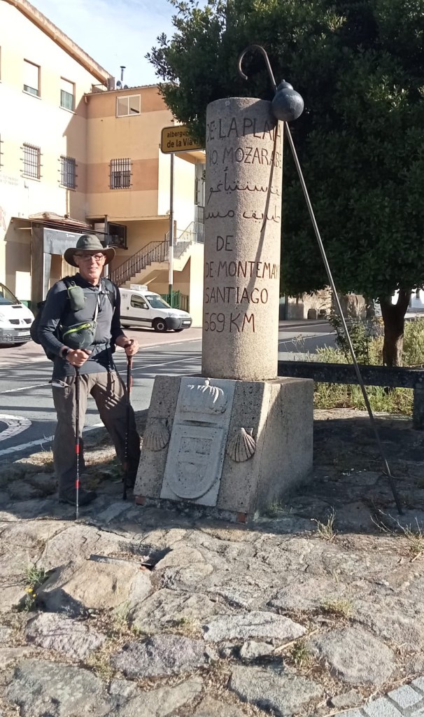 After the long 31-kilometer day yesterday in the heat, we planned a shorter day today. While shorter, there were two very long and steep hills to climb, making the day not as much of a rest after the long day yesterday as we had hoped. We are closing on three full weeks on the Via de la Plata, and feeling stronger every day. Of course, at the end of a day’s walking, we are tired and do not feel strong right then, and we are trying to be sensible about the long distances. My right foot is improving, and I have been completely pain-free for four days now (yay!).