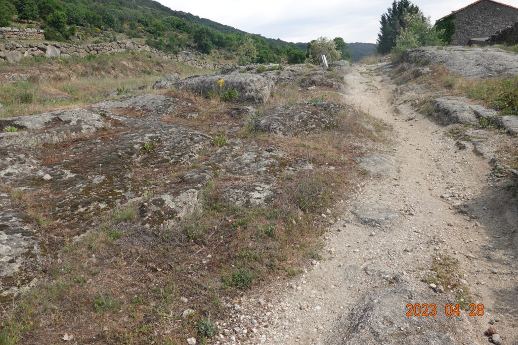 We walked through the village of Baños de Montemayer, came to its end (as can be seen from the sign on the left), and started up the long hill on the Roman road.