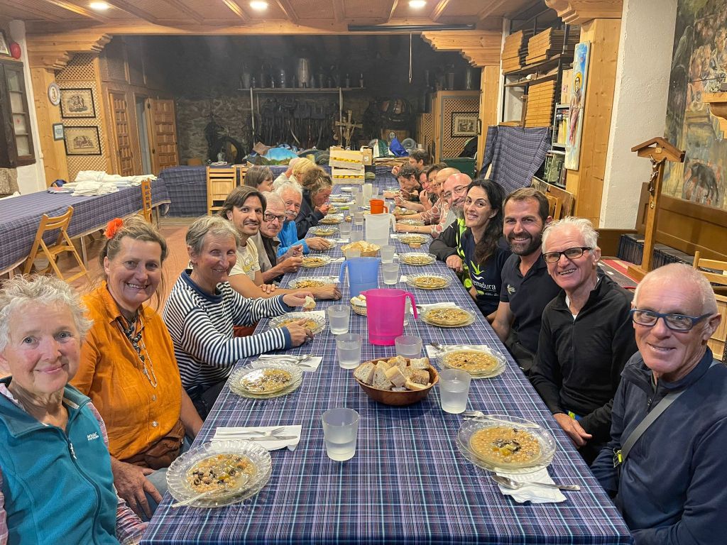 The albergue at Fuenterroble de Salvatierra is relatively famous in the Camino “world.” This albergue is associated with the church, and the priest who runs it is generous to all in need. They serve a communal dinner and a breakfast the next morning of coffee or tea and toast & jam. It is a “donativo” albergue, so on your way out, you donate whatever you think it was worth to you. The albergue is run by volunteers, people who are experienced pilgrims and want to “give back” to the Camino and pilgrims. It is not extravagant at all, but it is clean. I typically donate 15 Euros because they are welcoming and help pilgrims.
