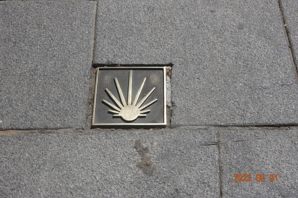And once across the bridge, we saw our first graphical Camino shell marker on the sidewalk. Salamanca is an old historic city, and they embrace their history and heritage, including the Camino route and its history.
