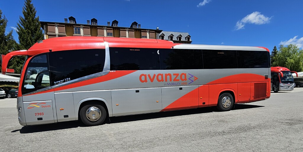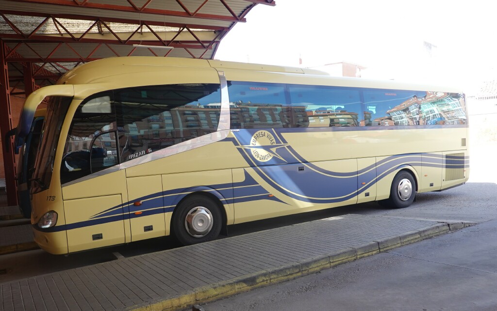 I took a local (yellow and blue) bus to Benavente and a then regional (orange and silver) bus to Ourense. [They appear to be the same model bus with different paint.]