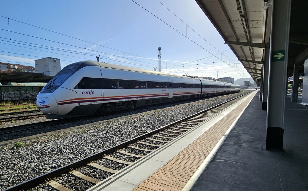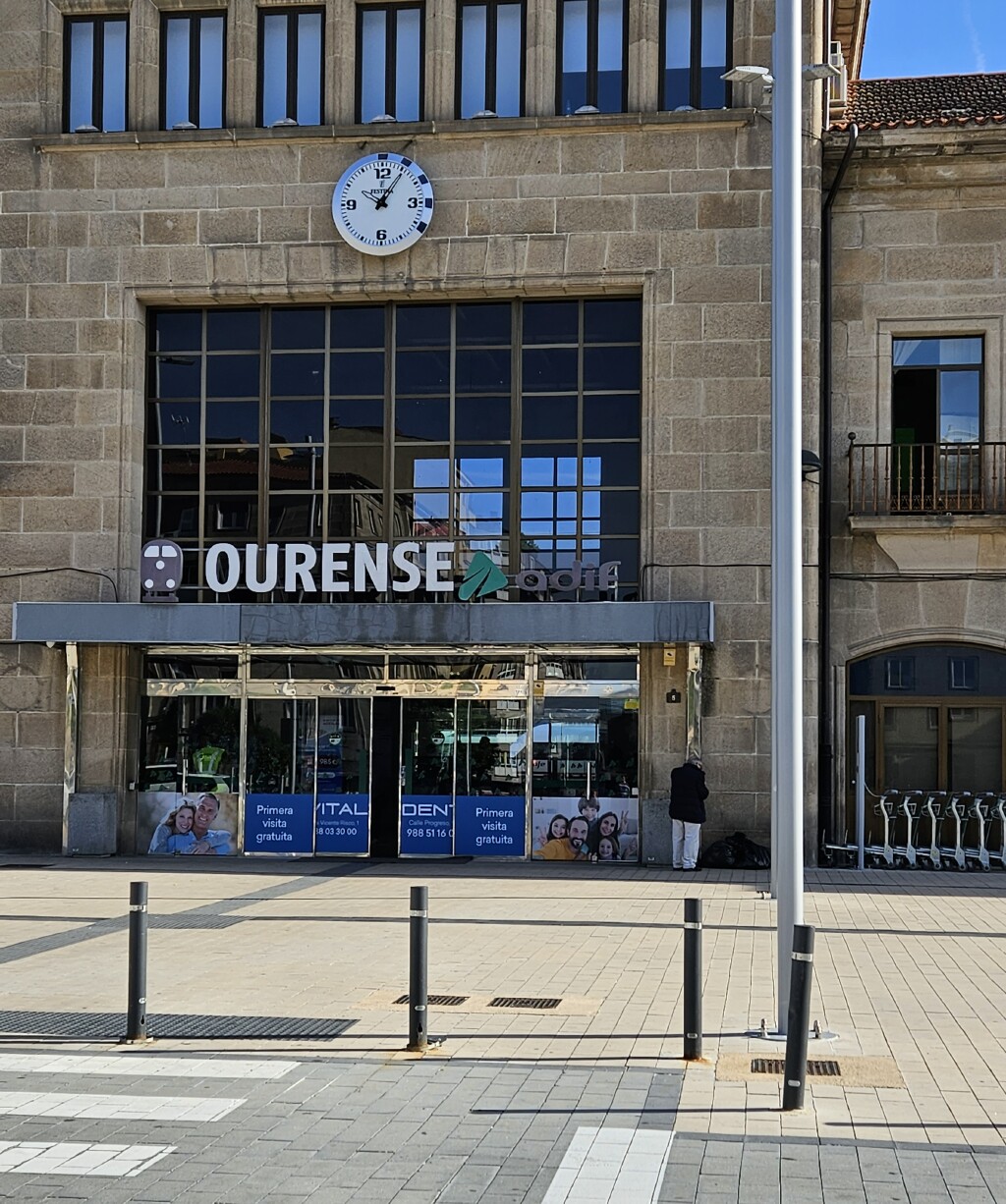 I took a train to Santiago de Compostela to retrieve the package I had sent to Casa Ivar (of the Camino Forum). That package had the bag in which to check my hiking poles for my return flights since hiking poles are not allowed as carry-on luggage. Here is the entrance to the Ourense train station and the very sleek and fast-looking train that would take me to Santiago de Compostela.