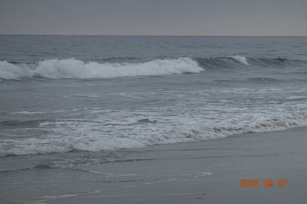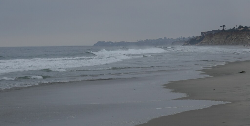 Chiang Mai is in northern Thailand, in the foothills of a mountainous area north and west. I’ll be away from the ocean and will miss my frequent early-morning walks at the beach, listening to the meditative sound of the waves as the day breaks. Recently on one of those walks, I brought my camera to share the views at sunrise. Today was overcast and the light very grey. The Pacific Ocean was very peaceful today. The waves were not dramatic, and few surfers were out.
