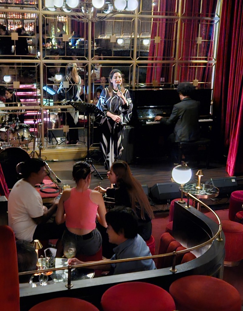 This is a venue acoustically designed specifically for music presentation. As I may have mentioned a year ago when I first found the Crimson Room, the jazz group playing (singer, tenor sax, drums, bass, piano) was not amplified except for the singer. Tonight featured a lady singer with a pianist (both Thai). I think the pianist is Sunny Rattana, but I did not get the singer’s name.
