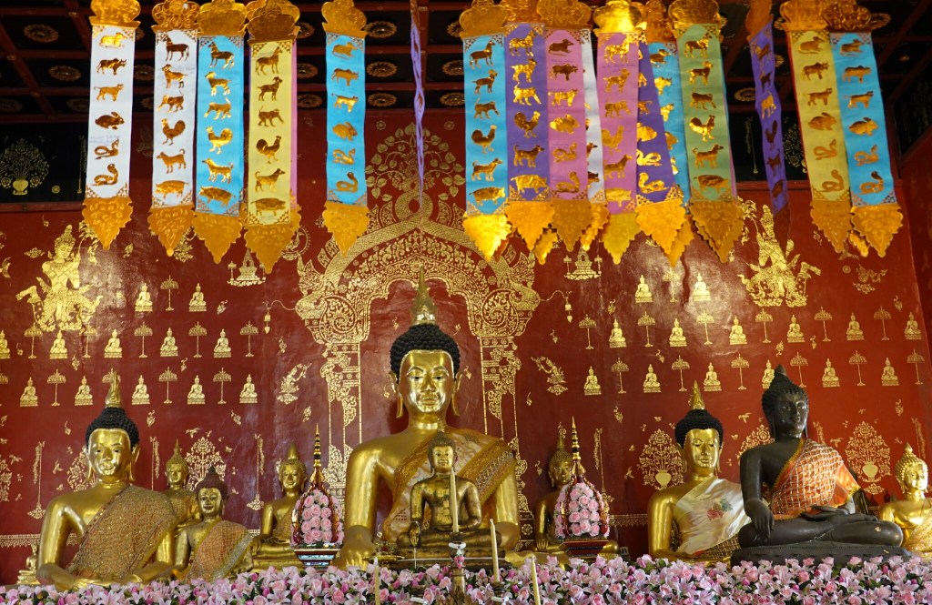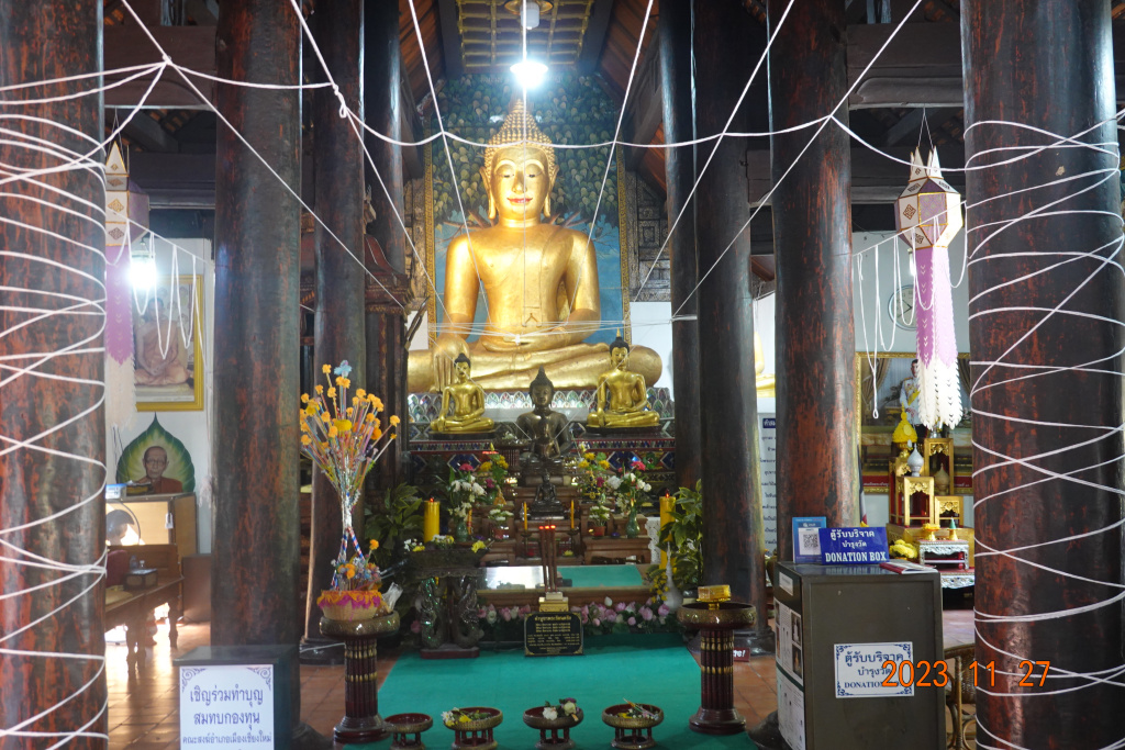 Inside, the viharn is very peaceful with its dark teak wood and large, 650-year-old Buddha statue: