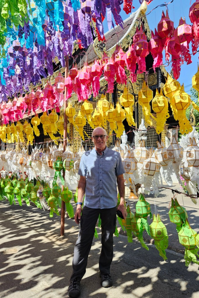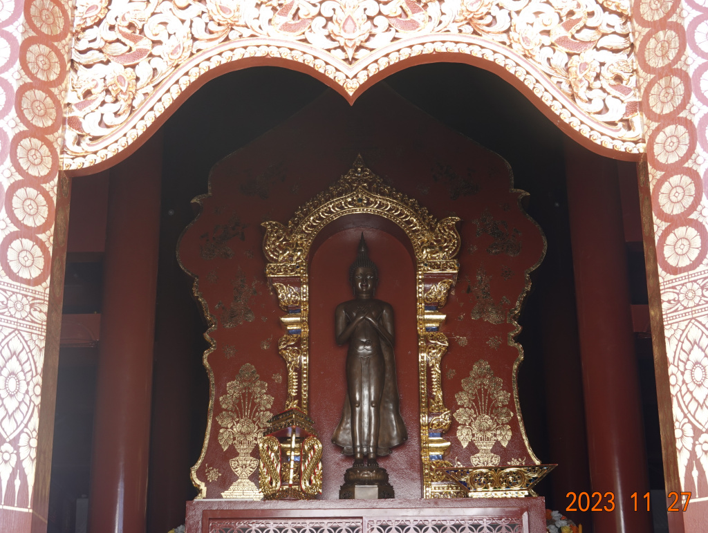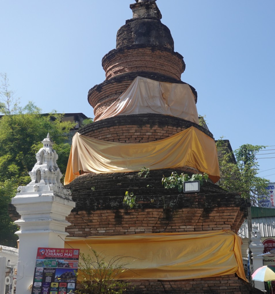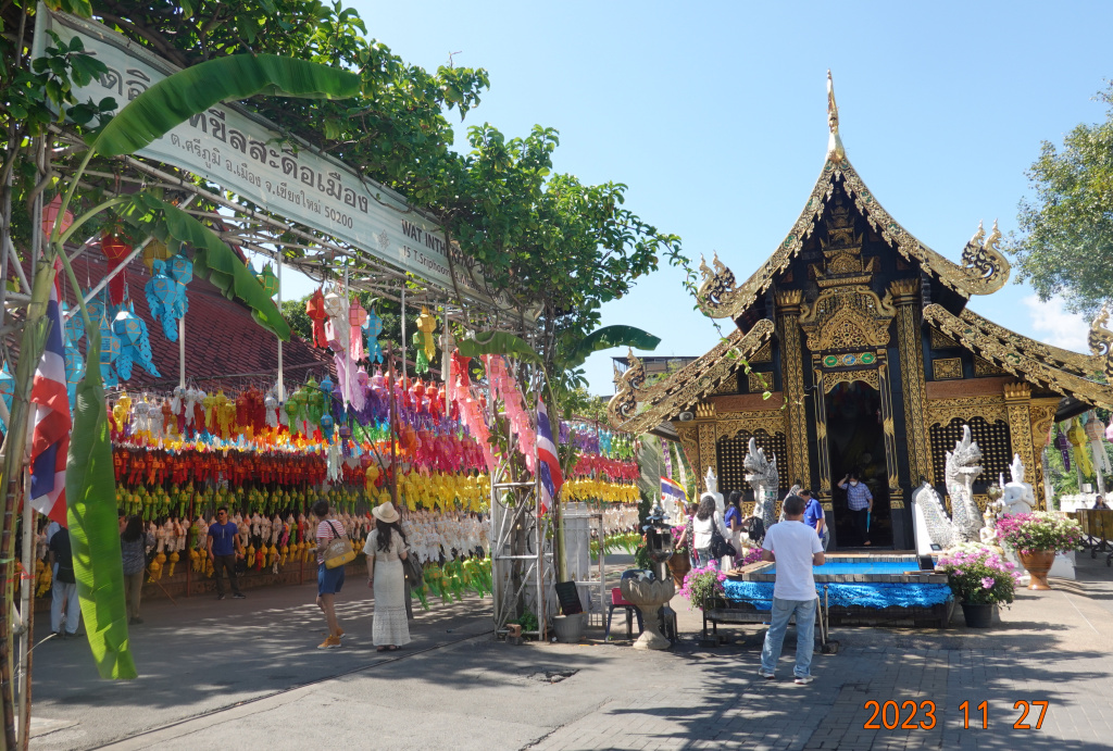 Because of it being so close to the Three Kings Monument, this temple is one of the most visited in Chiang Mai. Today, with the Loy Kratong festivities taking place all around the city, this temple is decorated for people to take pictures and post on their social media. Here is an overview photo I made as I got close to the temple. Many people here today.