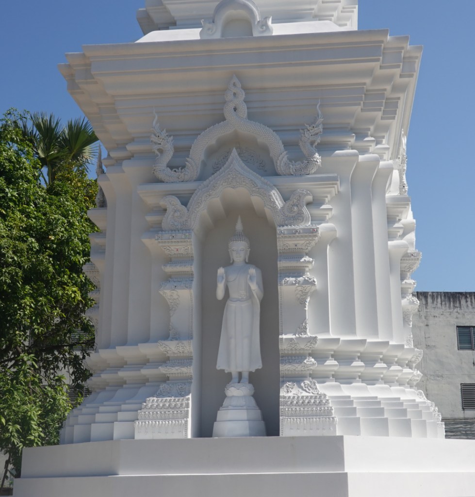South of and adjacent to the Monument to the Three Kings is a very old temple, Wat Inthakin, or more formally Wat Inthakin Sadeu Muang. This is where, it is said, the city pillar called “Inthakin” was erected in 1296 by King Mengrai when Chiang Mai was founded. “Wat Sadeu Muang” means “Temple of the naval of the city” reflecting its central position in the old city. The Inthakin pillar was moved from the temple to Wat Chedi Luang by King Kawila in 1800 and today the pillar is venerated each year around May during the Inthakin Festival.