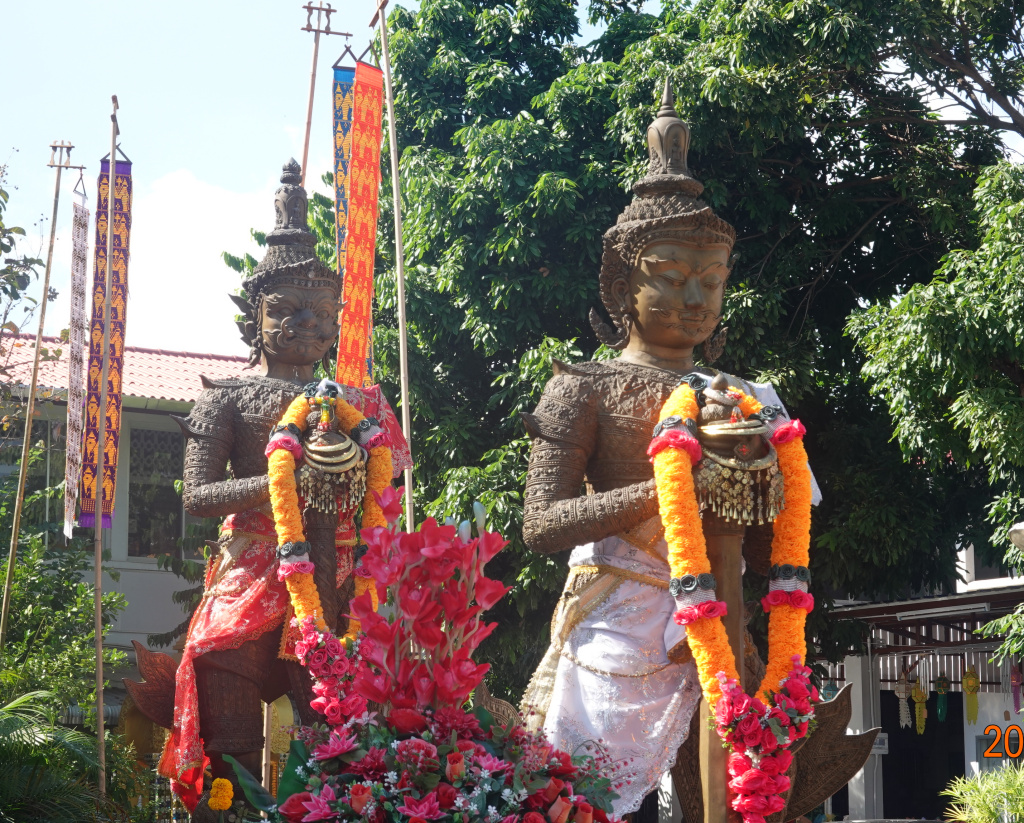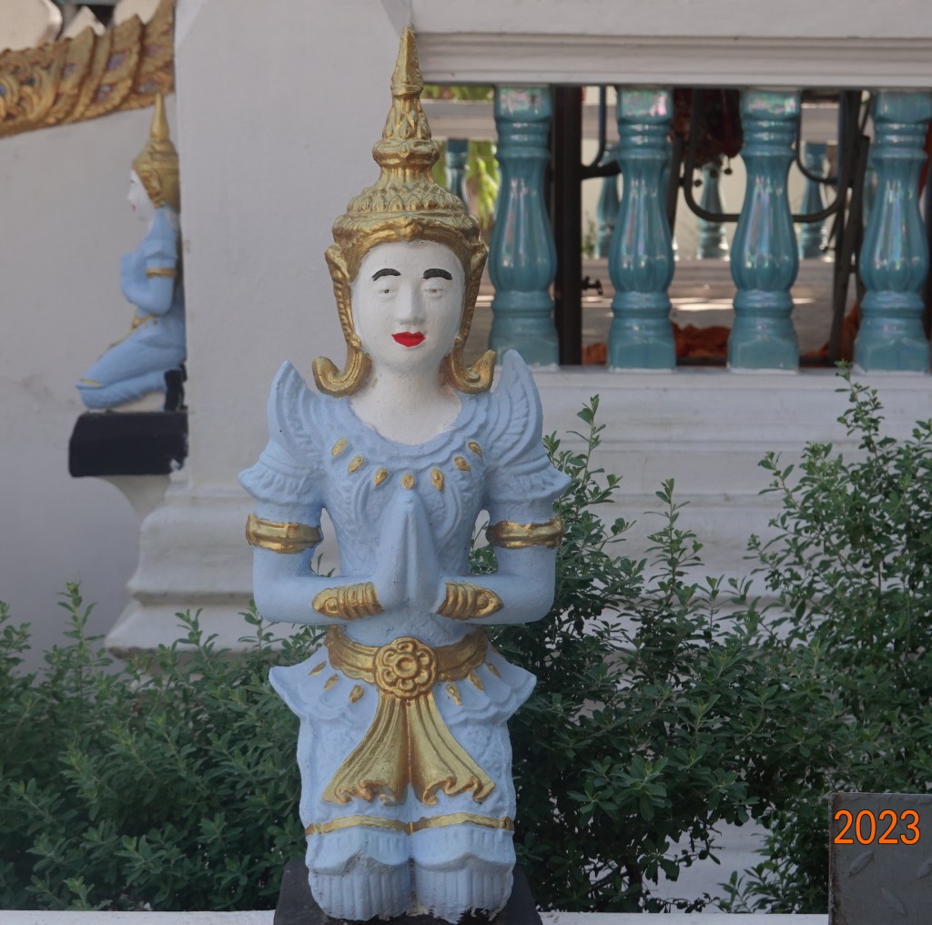 To the right of the viharn entrance were these statues. I could find no description in Thai or online. They have some characteristics of yaksha, but look more human-like. I’m very puzzled.