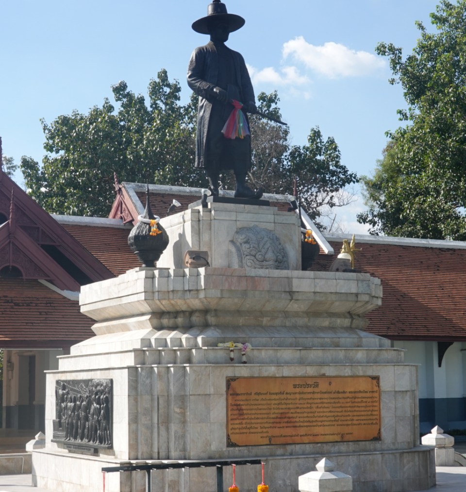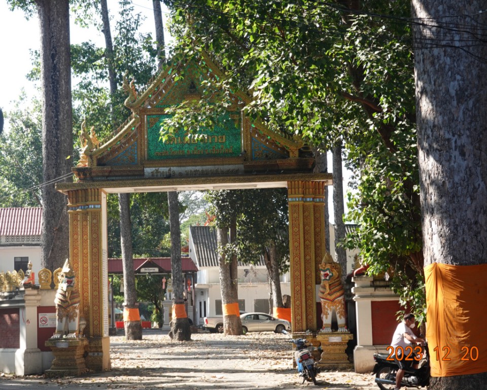Rat Uthit Road bends to the left and then to the right in a mild “S” curve. If you go straight as the road bends left, you walk into Wat Muang Kai.