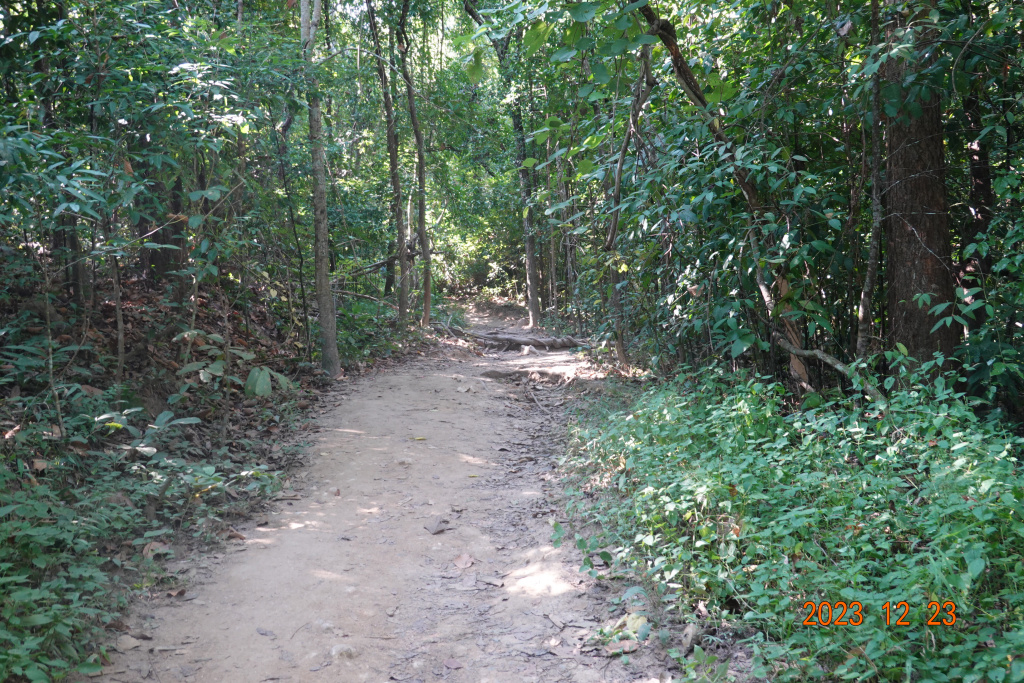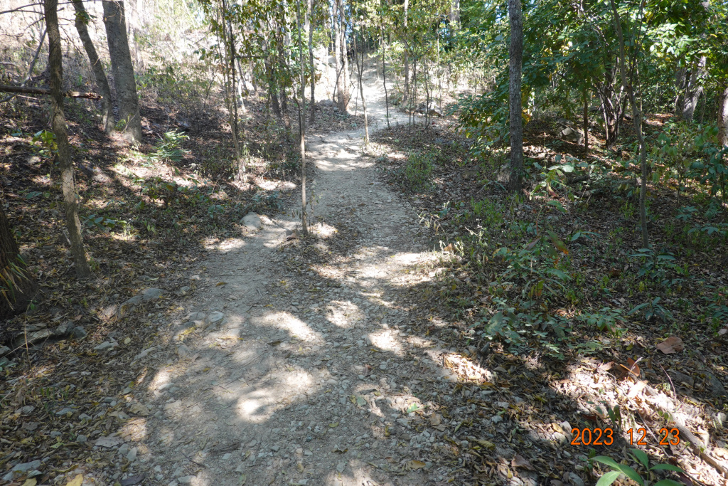 The morning temperatures have cooled a bit, and the afternoons, while still warm, are also a few degrees cooler. With no yoga class and no strength training scheduled today, it seemed like a good day to return to the Doi Suthep mountain and hike the monk’s trail for the first time this winter. “Doi” in Thai means mountain, and “Suthep” is the name of the mountain. When I first heard about the monk’s trail, I asked about finding the trailhead. I was told to go out past Chiang Mai University, then look for the two communication towers, and I would find the trailhead. It seemed a bit too ambiguous, especially to be out on foot in the hot sun looking for a trailhead. I hired a driver to take me one way to the entrance to Wat Phalad on the main highway to Wat Phra That Doi Suthep. From there, I walked down to the actual temple (which is not seen from the main road), looked around, and saw a few people coming out of the jungle on what looked to be a trail. I hiked down that trail, and after about 40-45 minutes, was at the trailhead. That is how I learned where the trailhead is. Now it is on Google Maps.