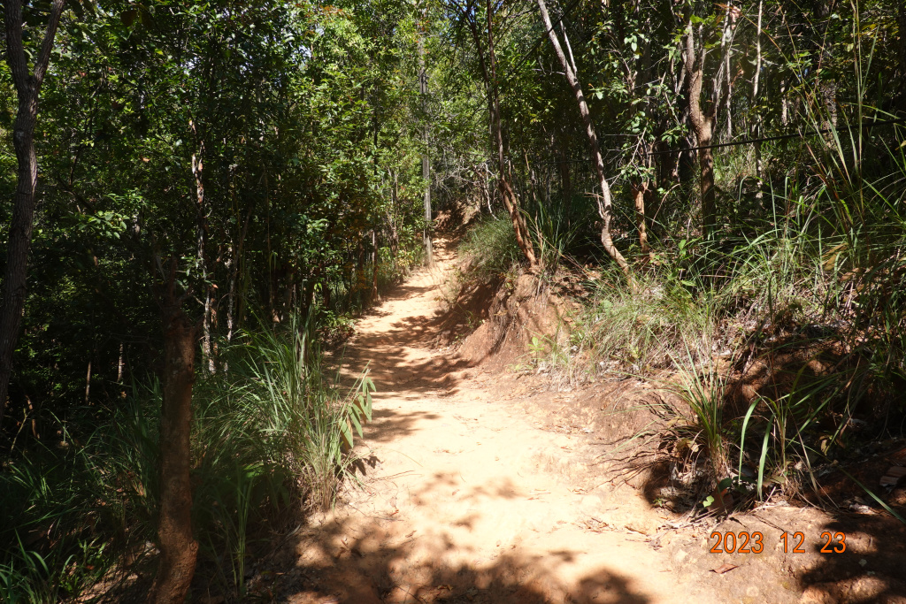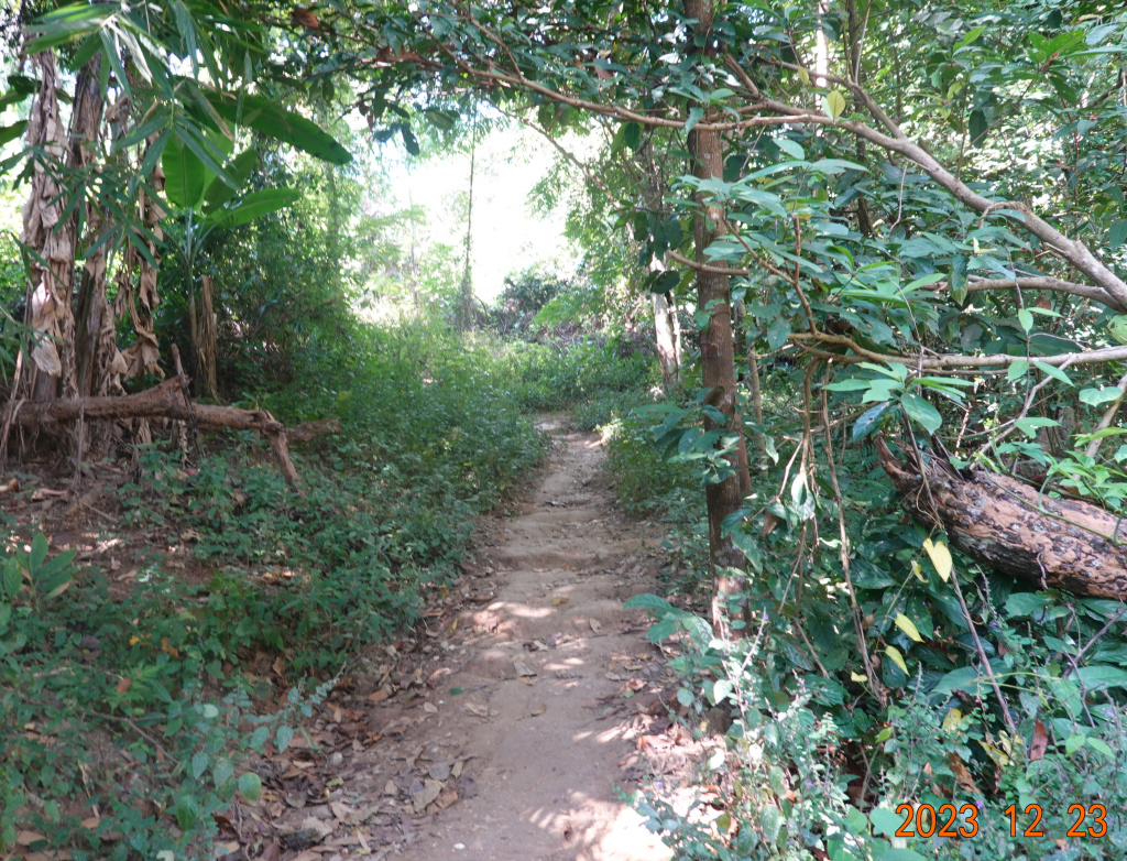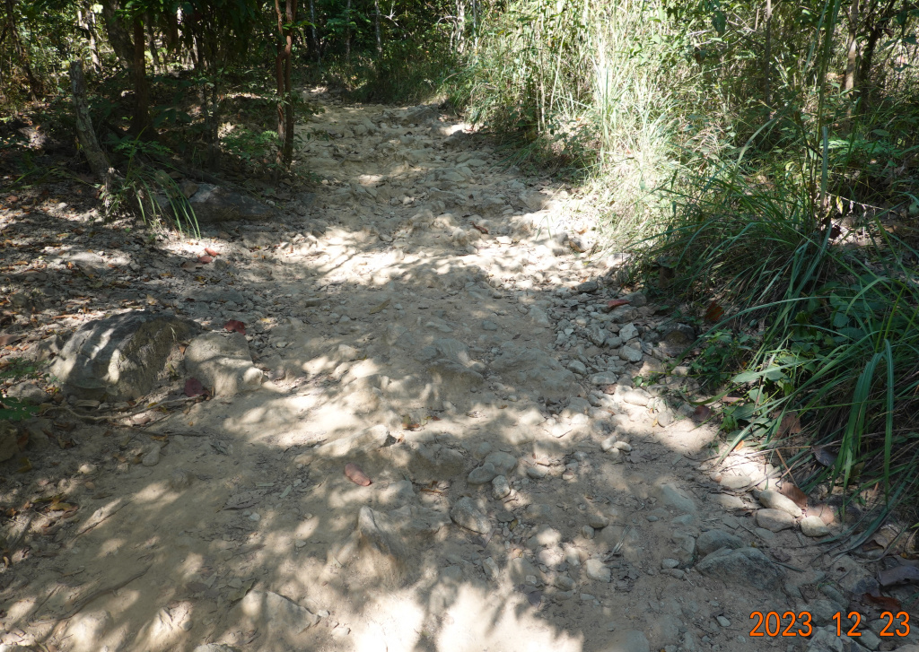I got to the trailhead where there were many motorbikes and cars parked, more than I had ever seen. Given social media and its location noted on Google Maps, this has become a popular hike. I headed into the forest/jungle (something in between a forest and a jungle) up the trail. I immediately remembered that the first part of this trail is fairly steep and very rocky from erosion from recent rains.