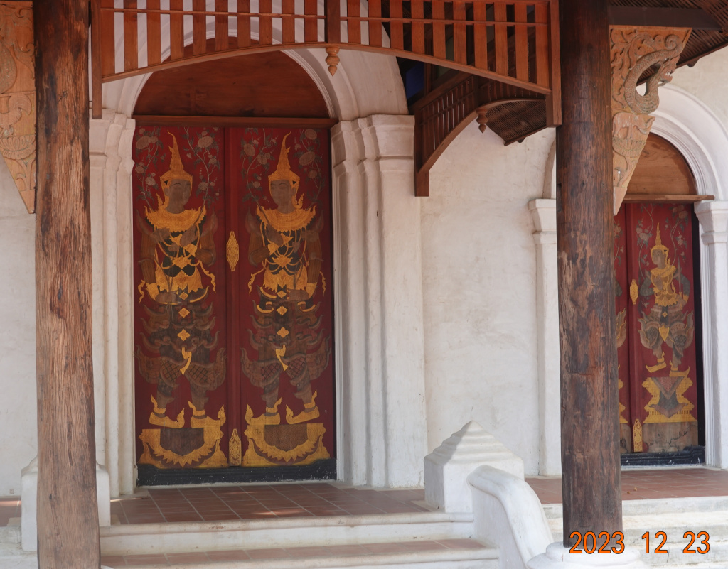 I made it to Wat Phalad. After crossing the creek on the new bridge, I always love seeing the colorful doors of this small viharn that is a bit away from the main part of the temple. The doors are always closed and are pretty and colorful. I do wonder what the inside looks like.