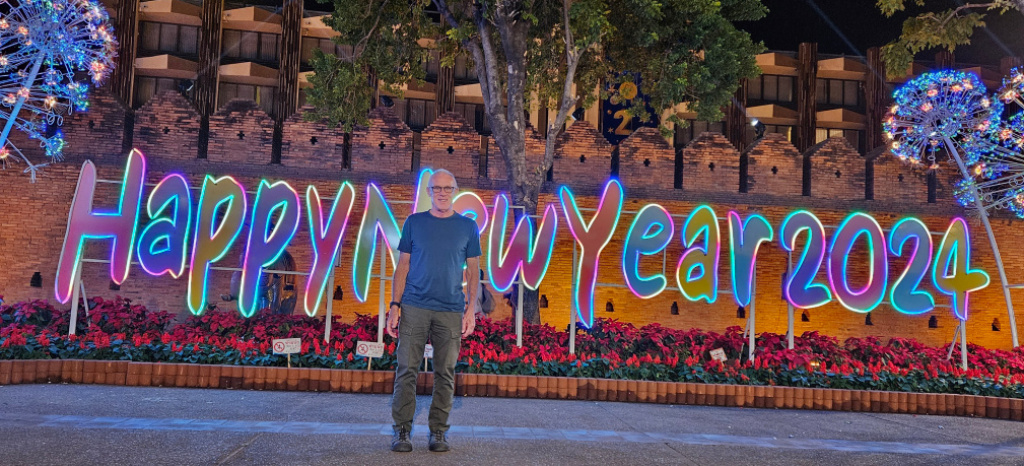 For the 2016 New Year’s Eve, there was no celebration. There was no official celebration for the 2017 New Year’s Eve, and I saw a small number of people celebrating, mostly tourists. The next two years saw a small official stage and decorations for the countdown celebration, dramatically smaller than years prior to 2016. Then came the global pandemic and again everything stopped, just like everywhere. After Thailand started slowly opening its borders to tourism, initially with required PCR tests on arrival and again after 6 days, I came back for a shorter, 30-day visit. There was a very small stage and an official New Year countdown with some fireworks, very small in comparison to earlier years. Last year was a little bigger, and this year even bigger.