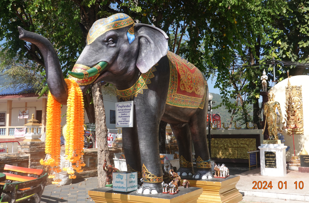 Almost right by the durian statues is this statue of Chang Pu, the majestic elephant. I love the statue and can find nothing of the story of this majestic elephant. This elephant, like the Bpu Kum Ngaa Keo elephant at the Elephant Memorial in Lamphun, has green tusks.