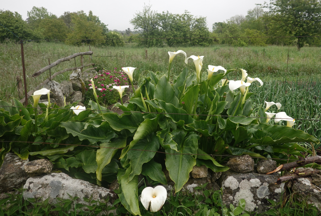 We came to a town where we thought we would take a break. On the way in, I spotted these flowers that look very much like calalillies. They are probably loving the rain more than we are.