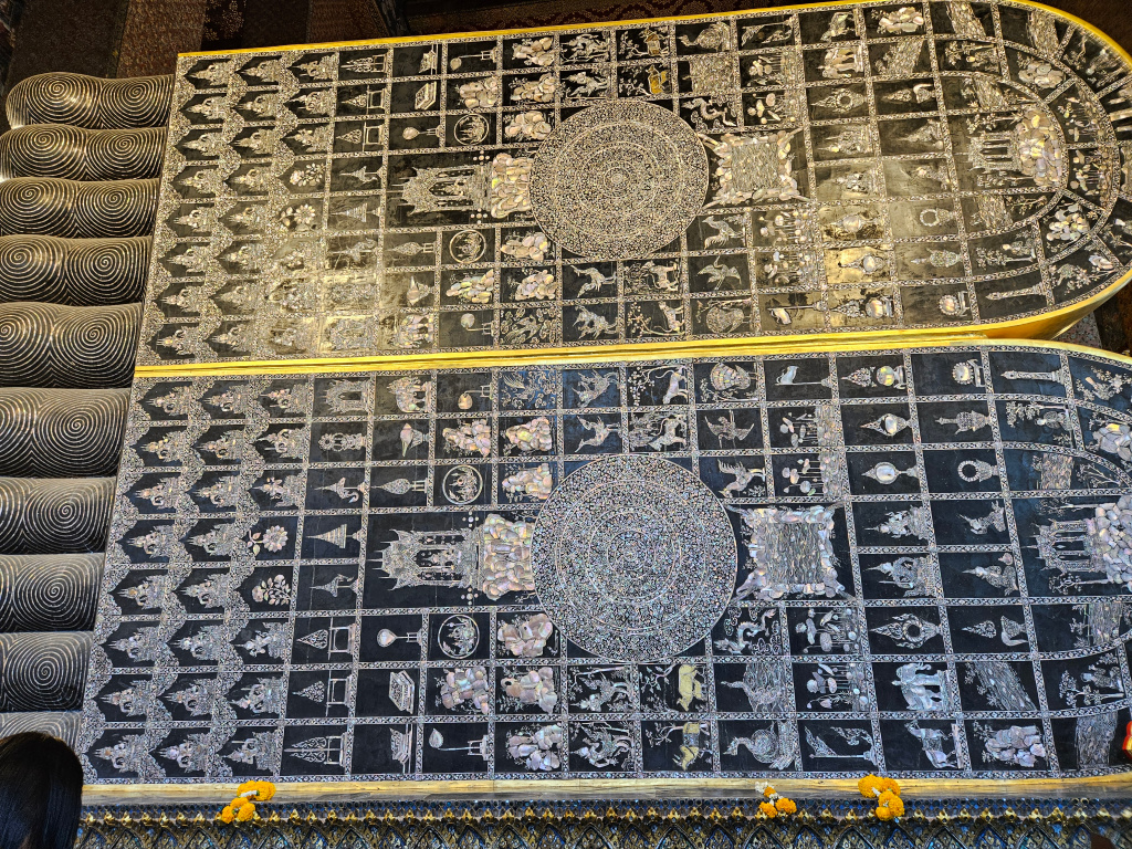 The symbols and icons on the bottom of the feet of the Reclining Buddha are quite meaningful, but not a subject with which I am familiar.
