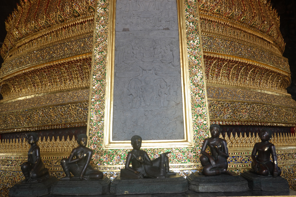 Also inside the viharn was this carved panel against a wall of gold decoration. I saw no indication of what this is or what is represented, and took a photo because it seemed very interesting in its elegant simplicity.
