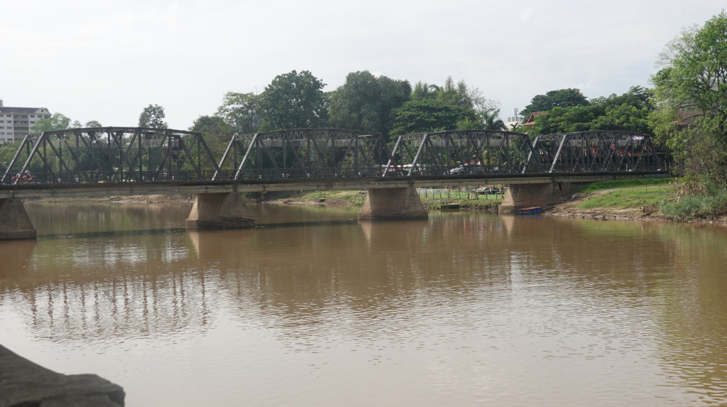 From the middle of the bridge, the river is broad, expansive, and very brown as is makes its way down toward Wiang Kum Kam.