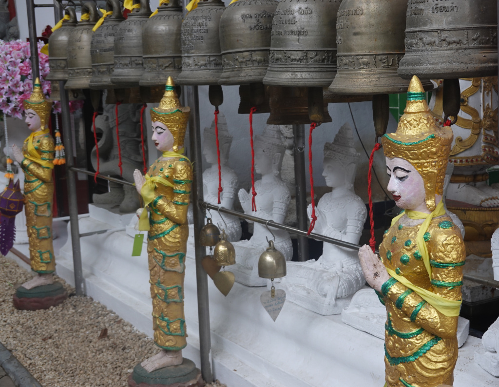 I always like and probably have shared a photo of the thewada (angelic beings that live in the heavenly realms – angels) at the line of bells at the side of the viharn (worship or assembly hall).