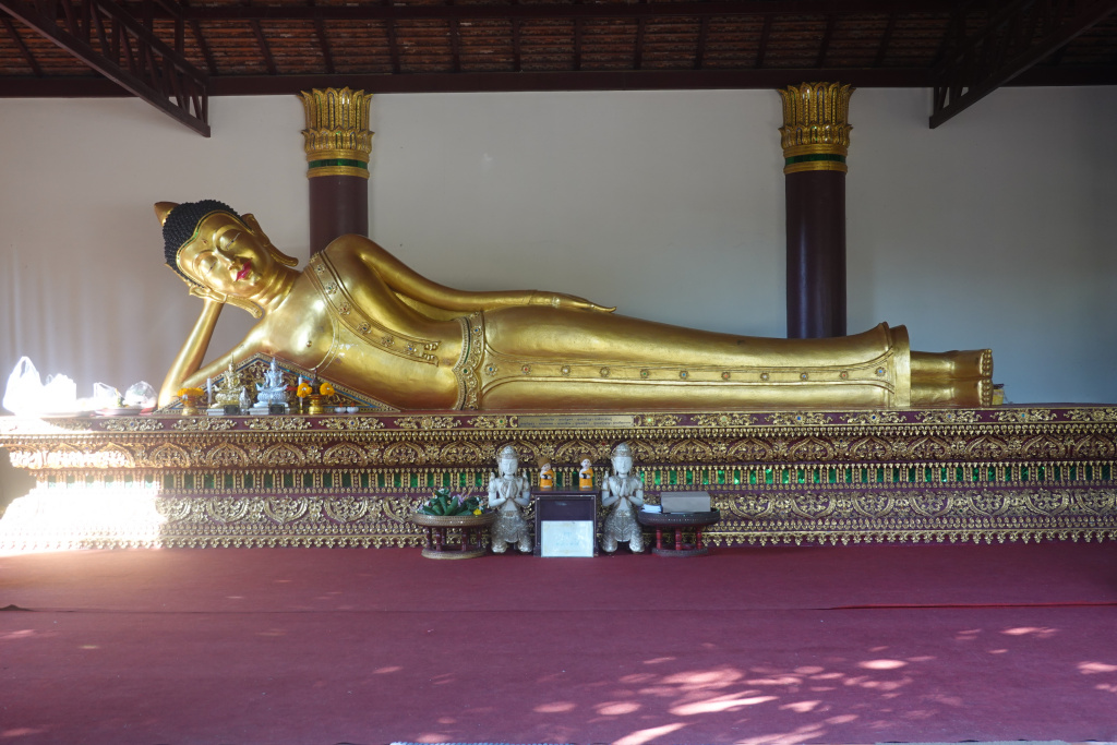 Over to the side of the viharn is a pavilion with a fairly large reclining Buddha.