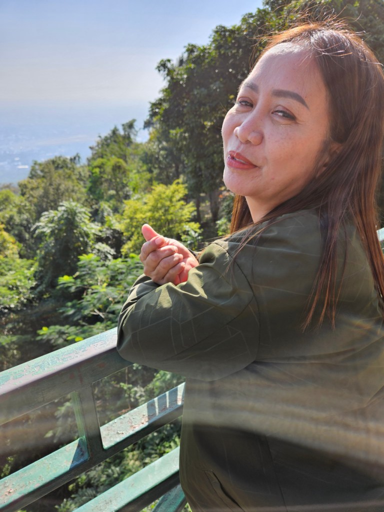 One thing to note is that Mukda loves photos to share on social media, so this blog post will have many photos, mostly of Mukda. To start things out, we stopped about halfway up Doi Suthep at a viewpoint at which I took some photos of Mukda.