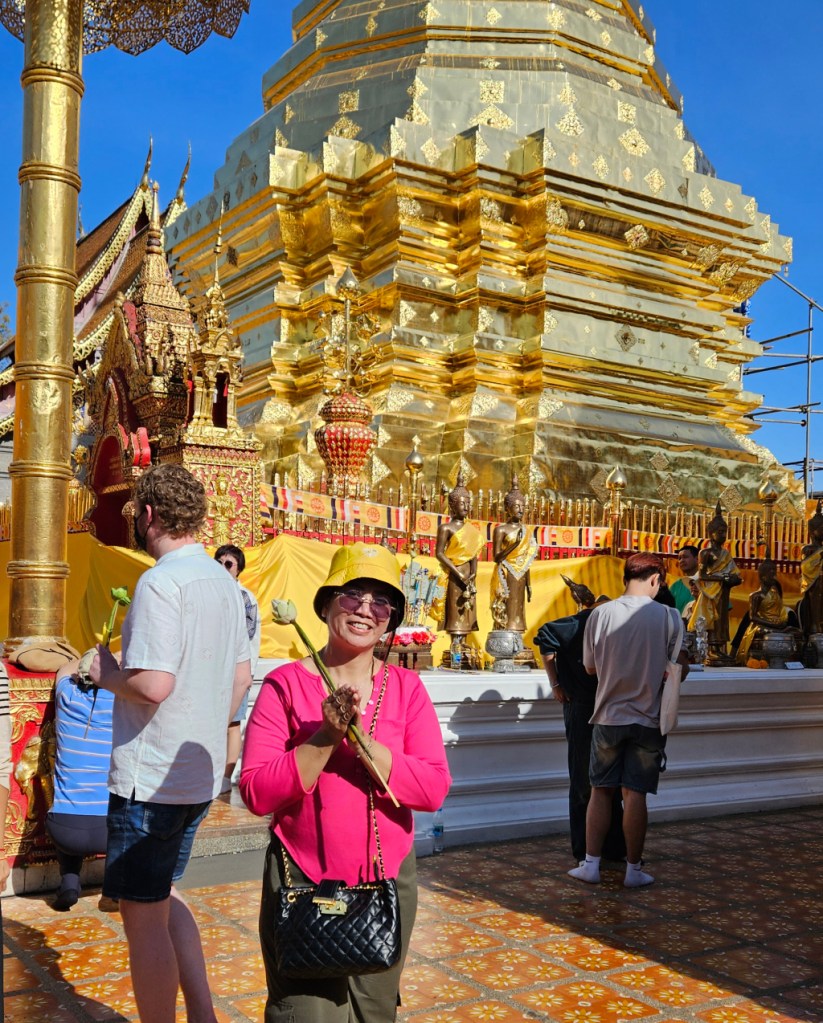 It is traditional to hold a flower and walk three laps around the inner walkway of the chedi while praying. We all did the meditative walk.