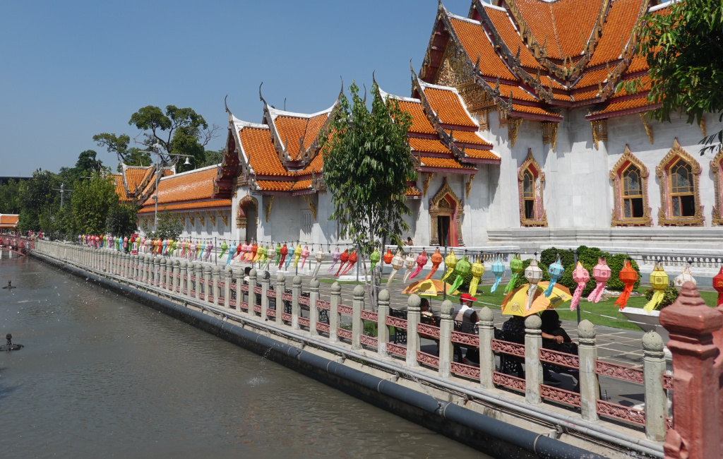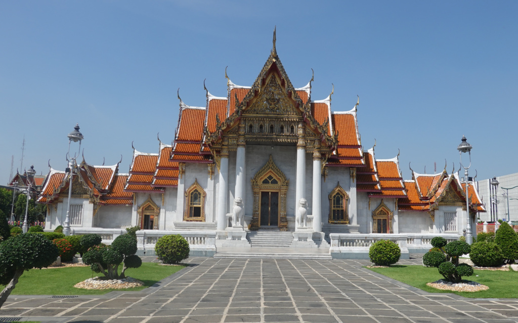 Wat Benchamabophit, formally known as Wat Benchamabophit Dusitvanaram, is one of the best-known and renowned religious landmarks in Bangkok. And it is a major tourist attraction. The temple is known for its refined architectural composition in the ornate style associated with temples of Bangkok. The central-Thailand style includes high gables, multi-tiered roofs, and elaborate finials. The Marble Temple combines traditional Thai aesthetics with European influences introduced during the reign of King Chulalongkorn (King Rama V) after he had visited Europe.