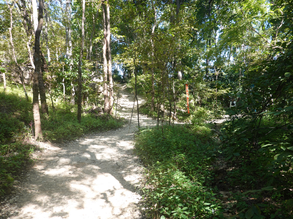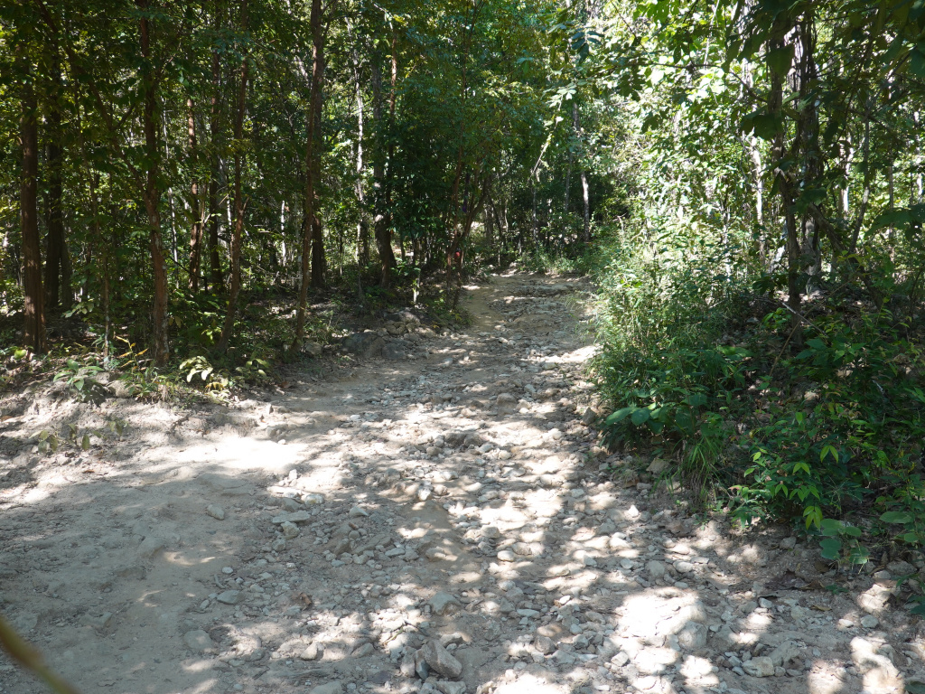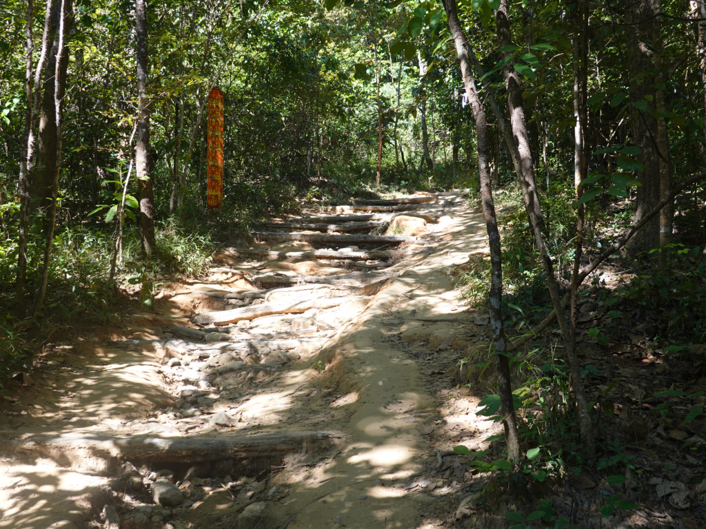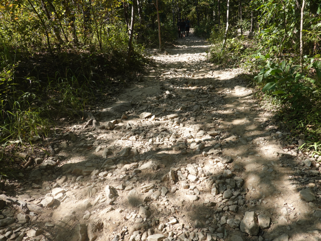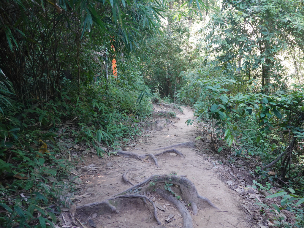 Sometimes there are beams across the path to prevent erosion that almost become stairs. And sometimes the path is just uphill over the roots and through the forest/jungle.