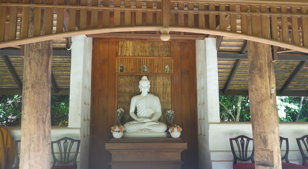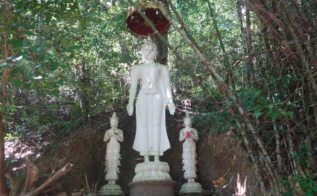 Slightly up the hill and to the left, this standing Buddha statue also has been cleaned and restored. So it is now clean and white. I always loved this Buddha image, standing in the forest.