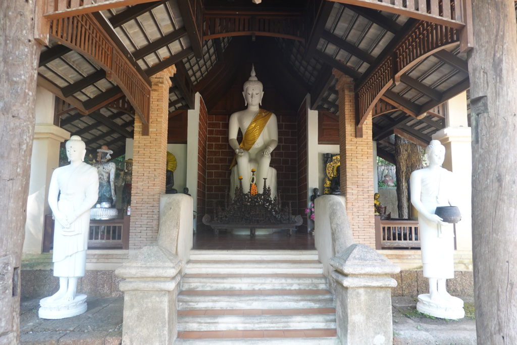 The Wat Phalad temple has undergone significant upgrades in the last 5 or 6 years. One change is that the rickety (and unsafe) bamboo bridge from which I took the previous photo is now a concrete bridge, firm and safe. Another change is that this smaller viharn (assembly or worship hall), once dark and gloomy, is now bright and inviting.