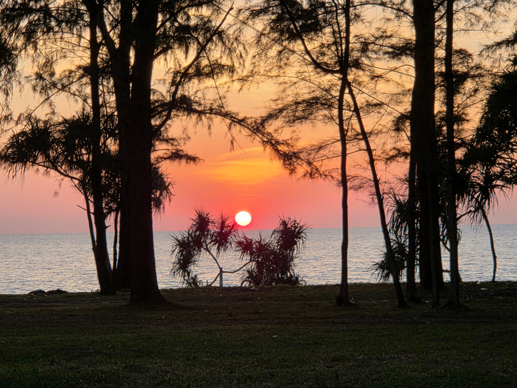 Before the karaoke, the sun set again over the Andaman Sea, as it does every day. In Thai Mueang, the sunset is dramatic, noteworthy.